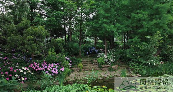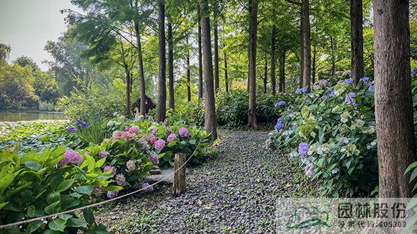 绣球园从原有的水杉林下覆盖至整个北园。