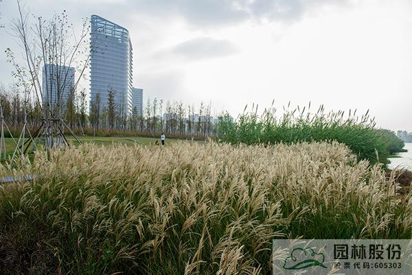植物选择从生态及品种多样性出发,遵照生态适应性选用乡土品种,乔木类包括香樟、湿地松、黄山栾树等,地被主要有大滨菊、月见草、细叶芒、芦苇、狼尾草等,合理搭配,在空间、色彩、节奏方面独具匠心,打造了高低错落、疏密有致的和谐景观。