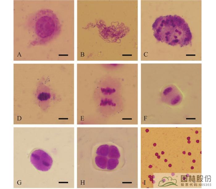 图 1 绣球‘无尽夏’小孢子母细胞减数分裂过程